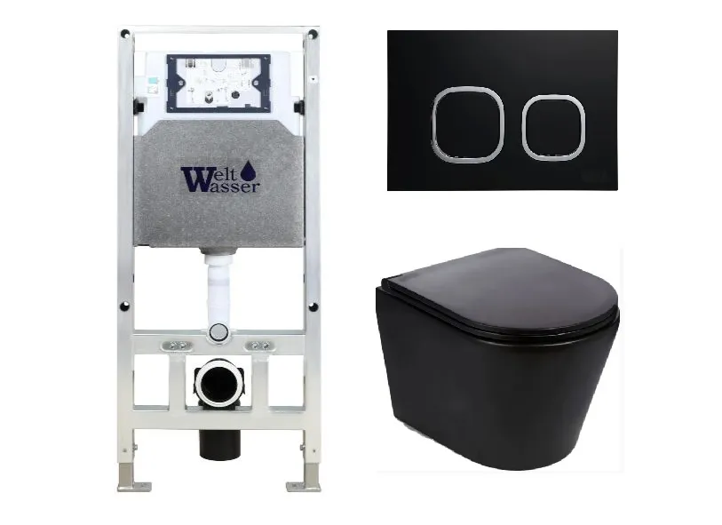 Инсталляция Welt Wasser AMBERG 506 ST + SALZBACH 043 MT-BL + Amberg RD-BL в комплекте с унитазом, безободковый, с сидением микролифт