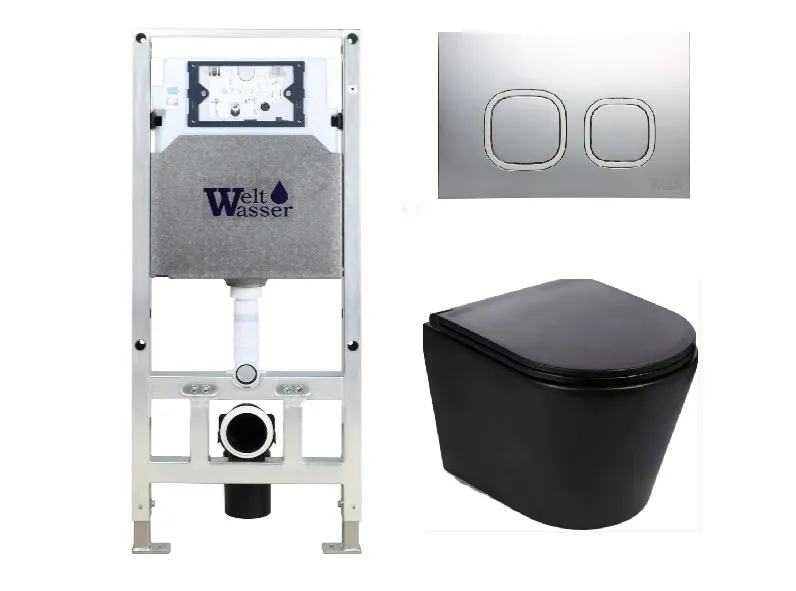 Инсталляция Welt Wasser AMBERG 506 ST + SALZBACH 043 MT-BL + Amberg RD-MT CR в комплекте с унитазом, безободковый, с сидением микролифт