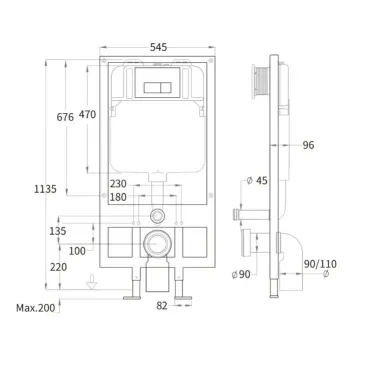 - Монтажная рама+бачок+кнопка смыва+уплотнитель