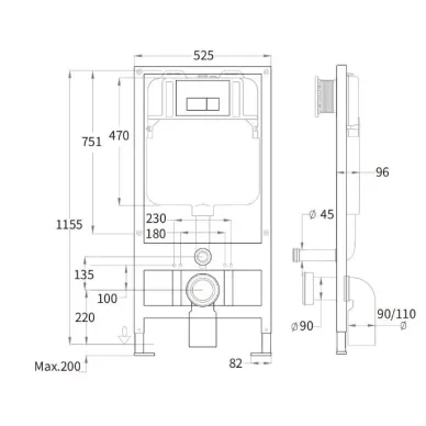 - Монтажная рама+бачок+кнопка смыва+уплотнитель