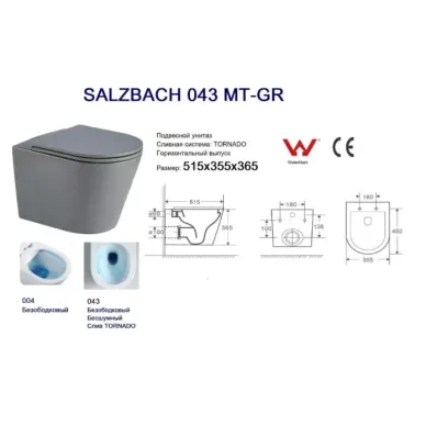 Подвесной унитаз Welt Wasser Salzbach MT-GR ультра тихий безободковый с сидением микролифт, серый матовый: