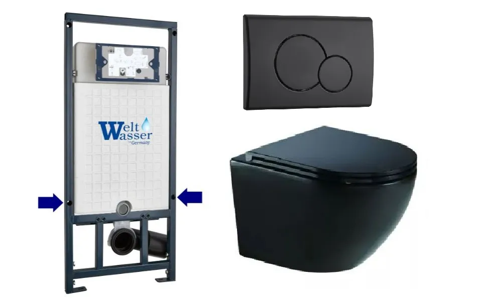 Инсталляция Welt Wasser MARBERG 507 + MERZBACH 041 XL MT-BL +MAR 507 RD MT-BL в комплекте с унитазом, безободковый, с сидением микролифт