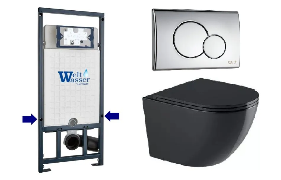 Инсталляция Welt Wasser MARBERG 507 + MERZBACH 043 GL-BL + MAR 507 RD-CR в комплекте с унитазом, безободковый, с сидением микролифт