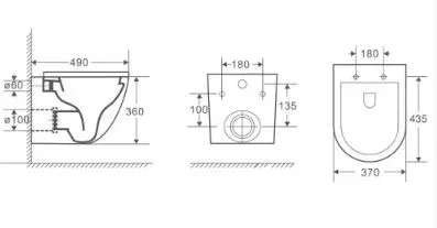 - Межосевое расстояние под крепеж унитаза 18 и23 см