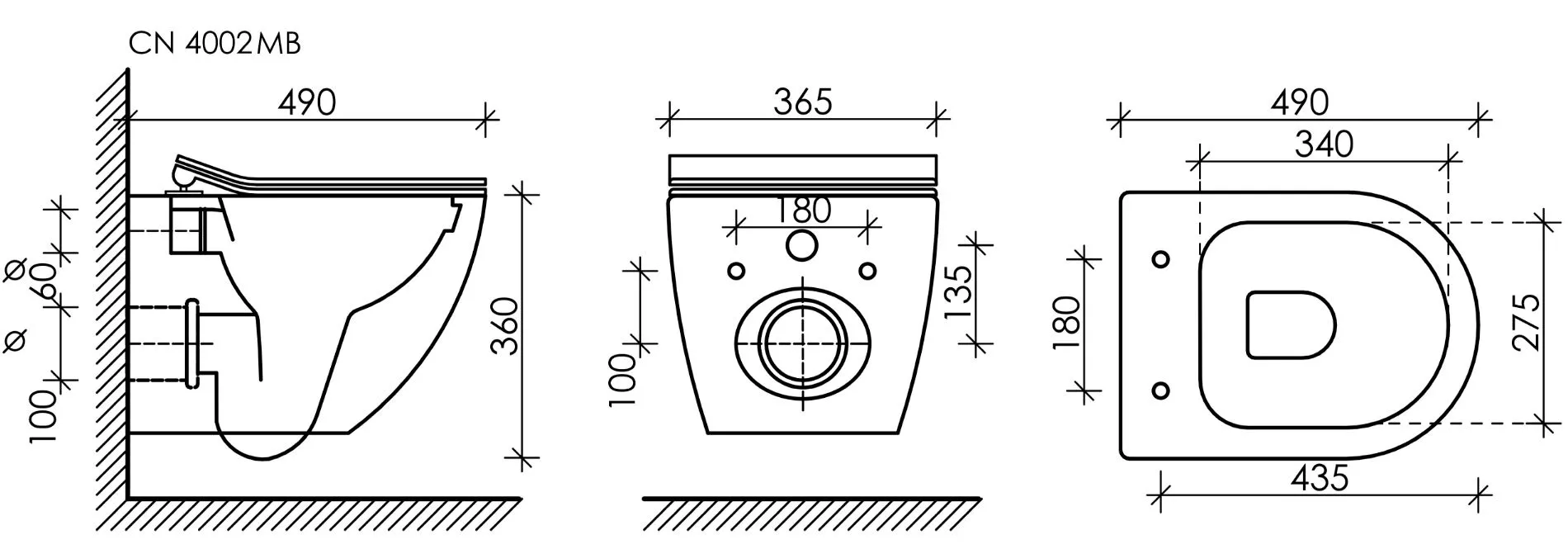 - Подвесной унитаз Metropol Rimless арт. CN4002MB