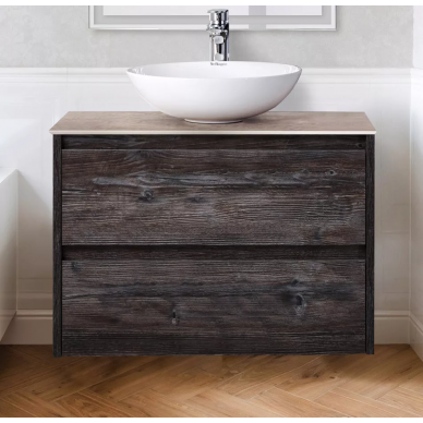 Комплект: База под раковину подвеснаяKRAFT-700-2C-SO-RNN, столешница из керамогранита KEP-70 Cemento Decorato (с нанесением узора), накладная раковина BB344, смеситель для накладных раковин LOY-LMC-CRM.