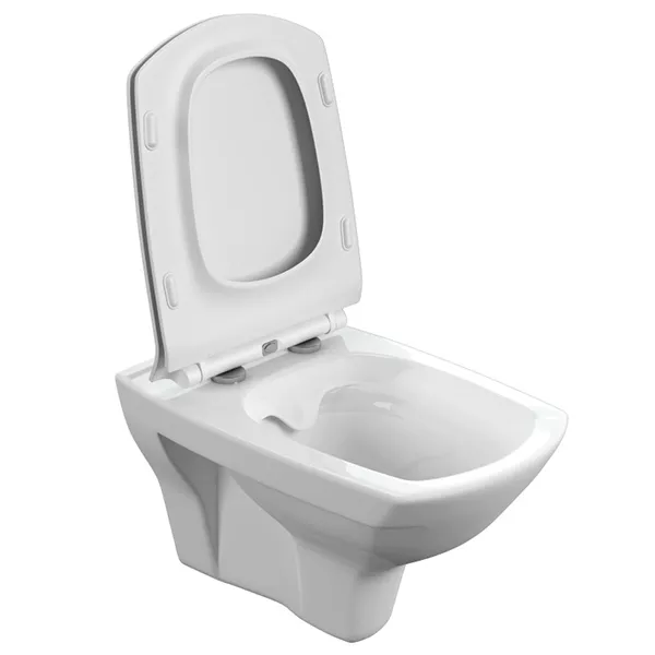 Унитаз настенный керамический безободковый Carina XL Clean On, каскадный смыв, сиденье для унитаза из дюропласта ультратонкое легкосъемное с функцией плавного закрывания