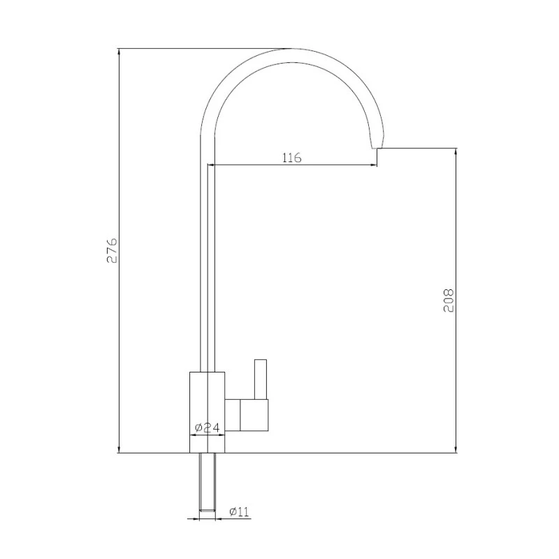 Кран на одну воду бренда Haiba. Изготовлен из нержавеющей стали. Гибкая подводка 40 см. С поворотным изливом.