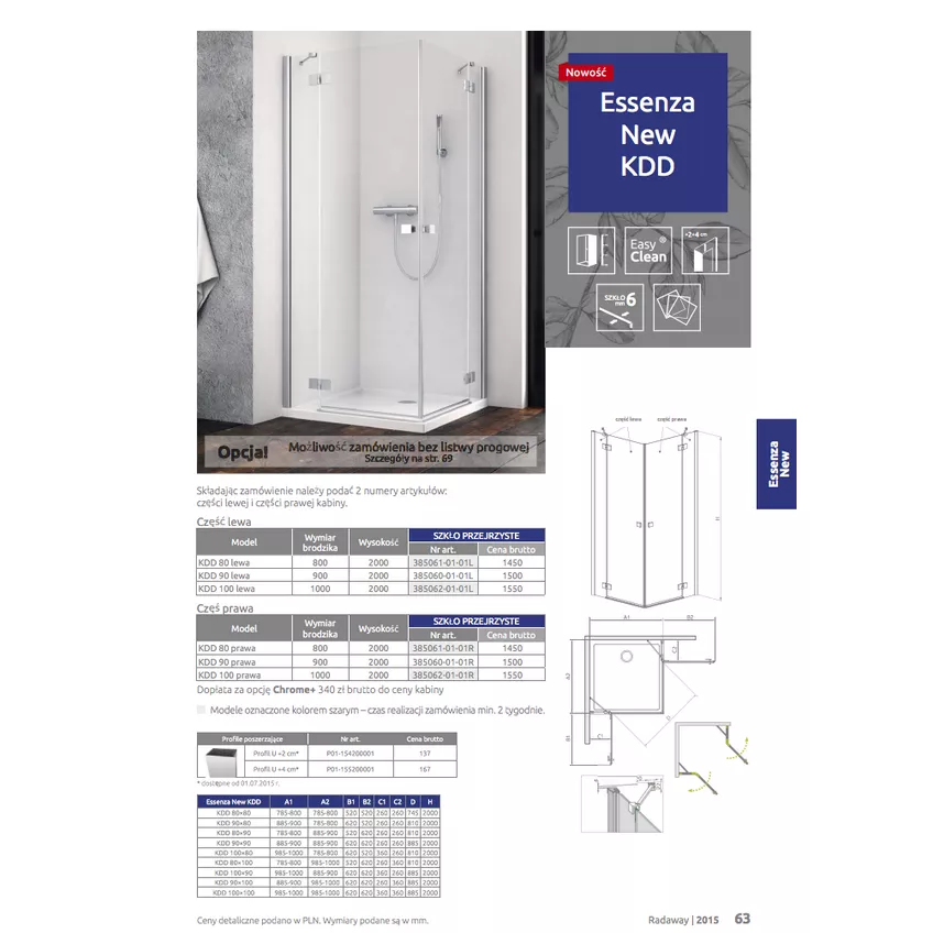 - Левая часть душевой кабины Radaway Essenza (385061-01-01L) (80 см) (L)