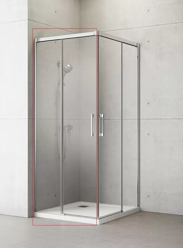 Левая часть кабины с раздвижной дверью. При заказе необходимо указывать артикулы левой и правой части, если они будут разных размеров, можно самостоятельно создать асимметричную кабину, которая доступна в правом и левом вариантах