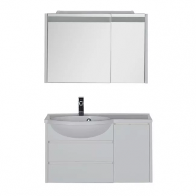 Состав комплекта: тумба. Дополнительно: раковина, зеркало с подсветкой.