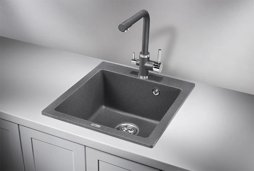 Компактная и вместительная мойка с удобной площадкой под смеситель, с функциональной прямоугольной чашей и востребованным размером для шкафа 450 мм, подходит для кухни любого размера. Необходимо учитывать ширину пристенного канта при установке мойки возле стены или пенала. Модель представлена в 8-ми цветах.