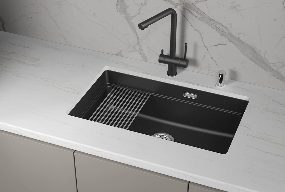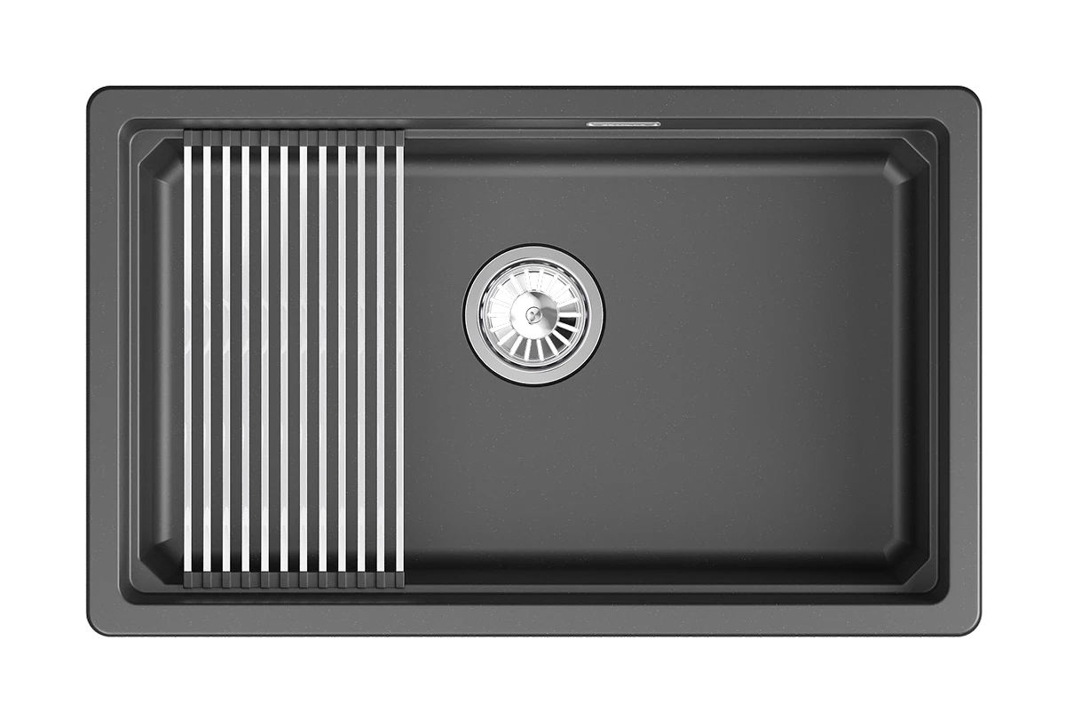 Односекционная мойка GRANULA KS-7303U из серии Kitchen Space - это вытянутая прямоугольная мойка, которая удобна в использовании и позволяет легко справиться с большим объемом посуды. Мойка выполнена из кварцевого композитного материала высокой плотности и гигроскопичности, что обеспечивает более 20 лет надежной эксплуатации. Ролл-мат и дозатор из нержавеющей стали уже включены в комплект. Выберите одну из 4 доступных цветов, чтобы подчеркнуть стиль вашей кухни.