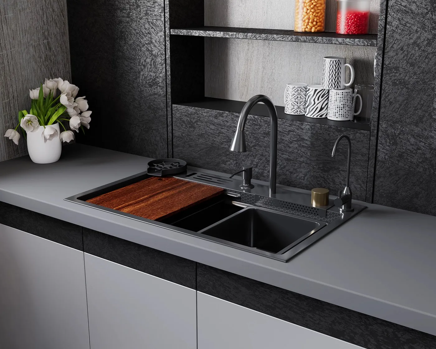 Многофункциональные мойки кухонные сделаны вручную из высококачественной нержавеющей стали SUS304, обработанной холодом для придания изделию прочности. Мойки идеально выдерживают перепады температуры, практичны и износостойки.