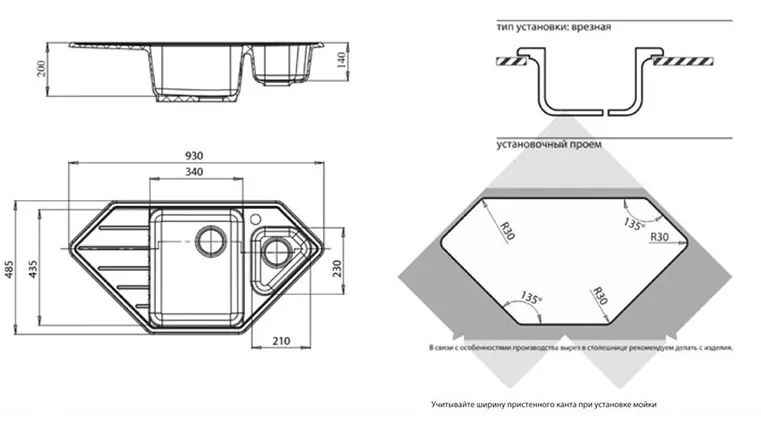 - Мойка кухонная GranFest Corner (C-950 E иней) иней