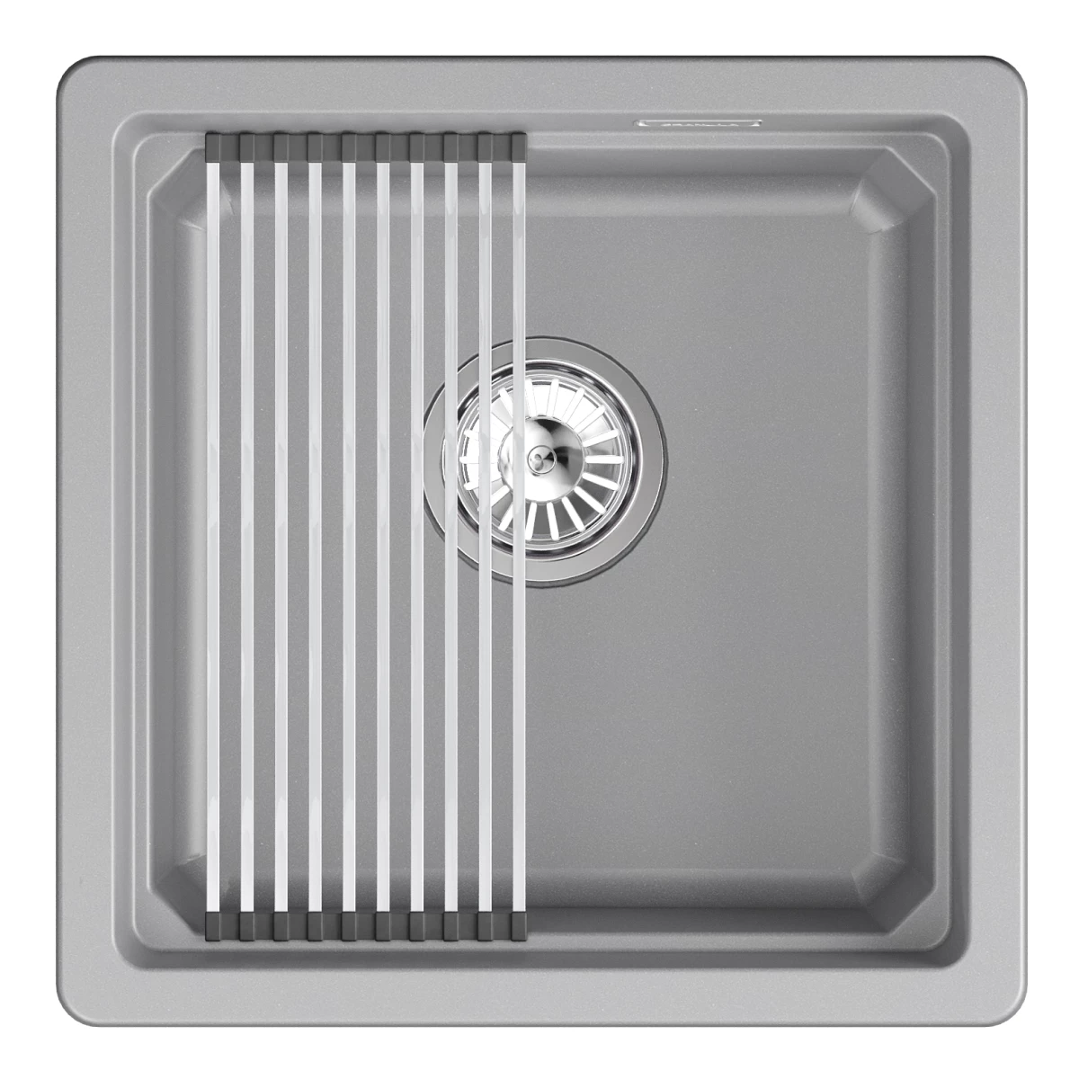 Кухонная мойка Granula – это не только стильный и функциональный элемент кухонного интерьера, но и практичное решение для установки под столешницу в шкаф 500 мм. Односекционная мойка квадратной формы 450х450 мм имеет удобную площадку внутри чаши для установки ролл-мата или разделочной доски, что облегчает процесс приготовления пищи. Мойка выполнена из кварцевого композитного материала высокой плотности и гигроскопичности, что обеспечивает не менее 20 лет надежной эксплуатации. Ролл-мат и дозатор из нержавеющей стали идут в комплекте. Доступна в 4 цветах и входит в серию Kitchen Space KS-4501U. Позвольте себе комфорт и удобство в кухне с кухонной мойкой Granula под столешницу.