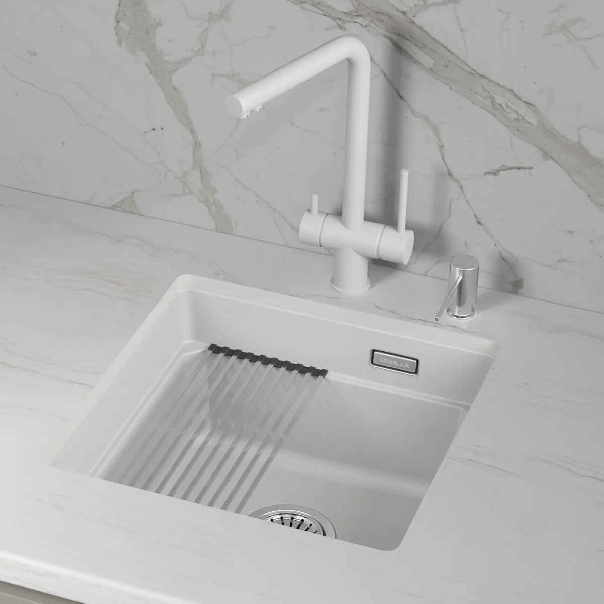 Мойка KS-5002 от Granula – это не только красивый и функциональный элемент вашей кухни, но и удобный и надежный помощник в повседневной жизни. Выполнена из кварцевого композитного материала высокой плотности и гигроскопичности, что обеспечивает не менее 20 лет надежной эксплуатации. Из-за своих превосходных характеристик и универсальности данная мойка подходит для любой кухни и гармонично впишется в интерьер. Она проста в уходе и прослужит многие годы благодаря своей надежности и качественному исполнению. Не упустите возможность стать обладателем этой отличной мойки для вашей кухни!