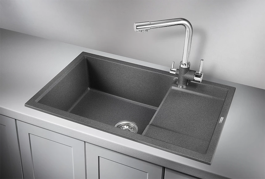 Мойка с огромной чашей и абсолютно идеальной эргономикой создаст визуальный дизайнерский образ на вашей кухне.