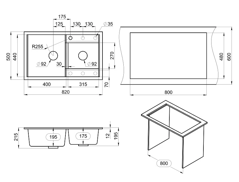Мойка кухонная Granula 8201, ГРАФИТ графит