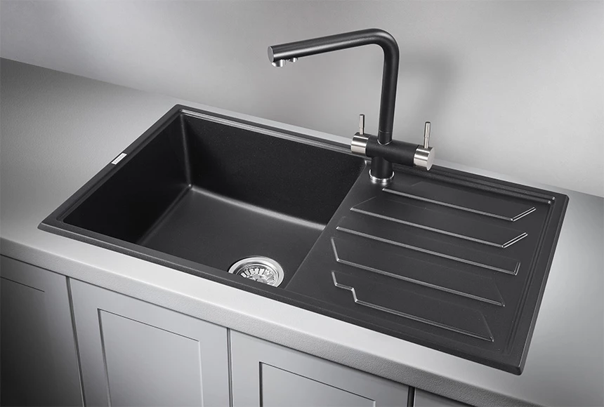 Удобная прямоугольная мойка нового поколения с рационально спроектированными размерами чаши увеличенного размера и углубленного рельефного крыла, будет заметным и удобным решением на любой кухне. При установке моек универсального/подстольного монтажа, смеситель крепится на столешницу или на стену. Модель представлена в 8-ми цветах.