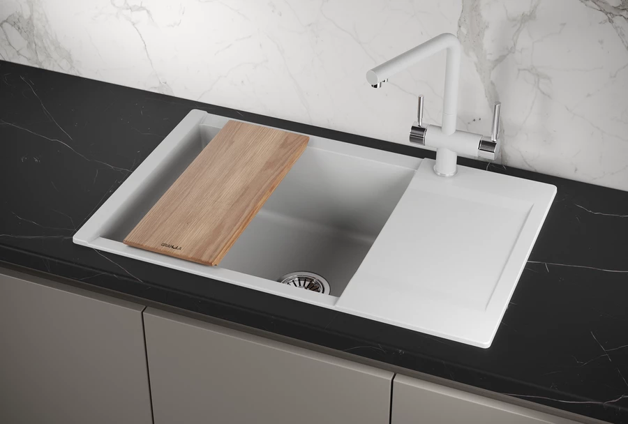 Представляем Granula Estetica - инновационную кухонную мойку с оригинальным дизайном и широким выбором цветовых решений (всего 7 цветов). Корпус изготовлен из прочного кварца, который сохраняет свой первозданный вид даже при регулярном контакте с водой. В комплект входят разделочная доска из ясеня и сифон, защищающий от протечек благодаря прямоугольному переливу. Прямоугольная форма мойки дополнена крылом для дополнительного удобства в использовании. Подходит для установки измельчителей отходов, которые улучшают гигиену на кухне и облегчают процесс уборки. Производитель Granula гарантирует качество мойки на протяжении 5 лет и предлагает профессиональный сервис.
