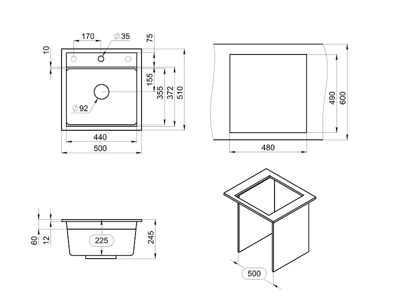 Габариты мойки (ШxГxВ): 500 x 510 x 245 мм.