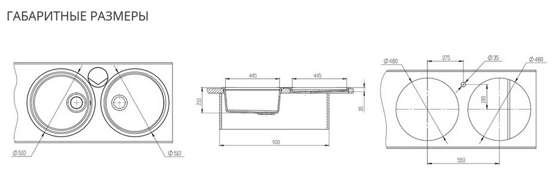 Мойка KitKraken Spring Black – мойка с малой глубиной по всему диаметру, служит для создания индивидуального сета из кухонных моек.