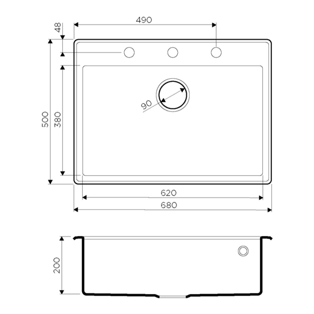 | Отверстия под смеситель: | без отверстий |