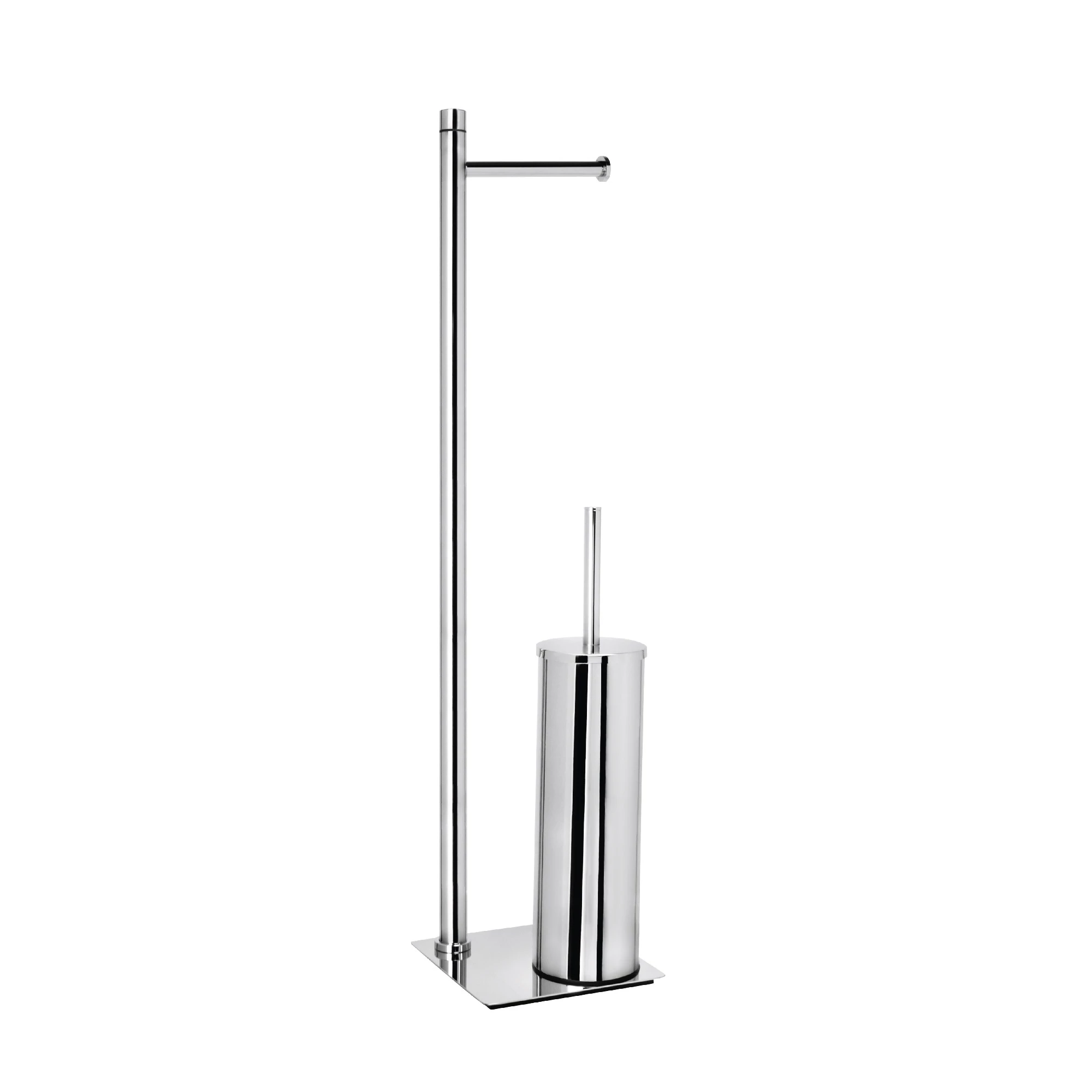Напольная стойка с держателем туалетной бумаги и ёршиком для унитаза. Материал - полированная нержавеющая сталь.