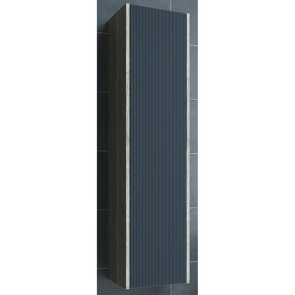 Подвесной пенал, выполнен в современном стиле. Материал корпуса выполнен из ЛДСП в цвете дуб шерман, материал фасада ЛМДФ с вертикальной фрезой, покрытие фасада эмаль в цвете графит. Шкаф одностворчатый, внутри стеклянные полки (3шт). Открытие с помощью системы Push to Open. Пенал с рифлёным фасадом будет отлично и стильно смотреться как в ванной, туалете так и в прихожей. Поставляется в собранном виде. Гарантия 2 года, подробная инструкция.
