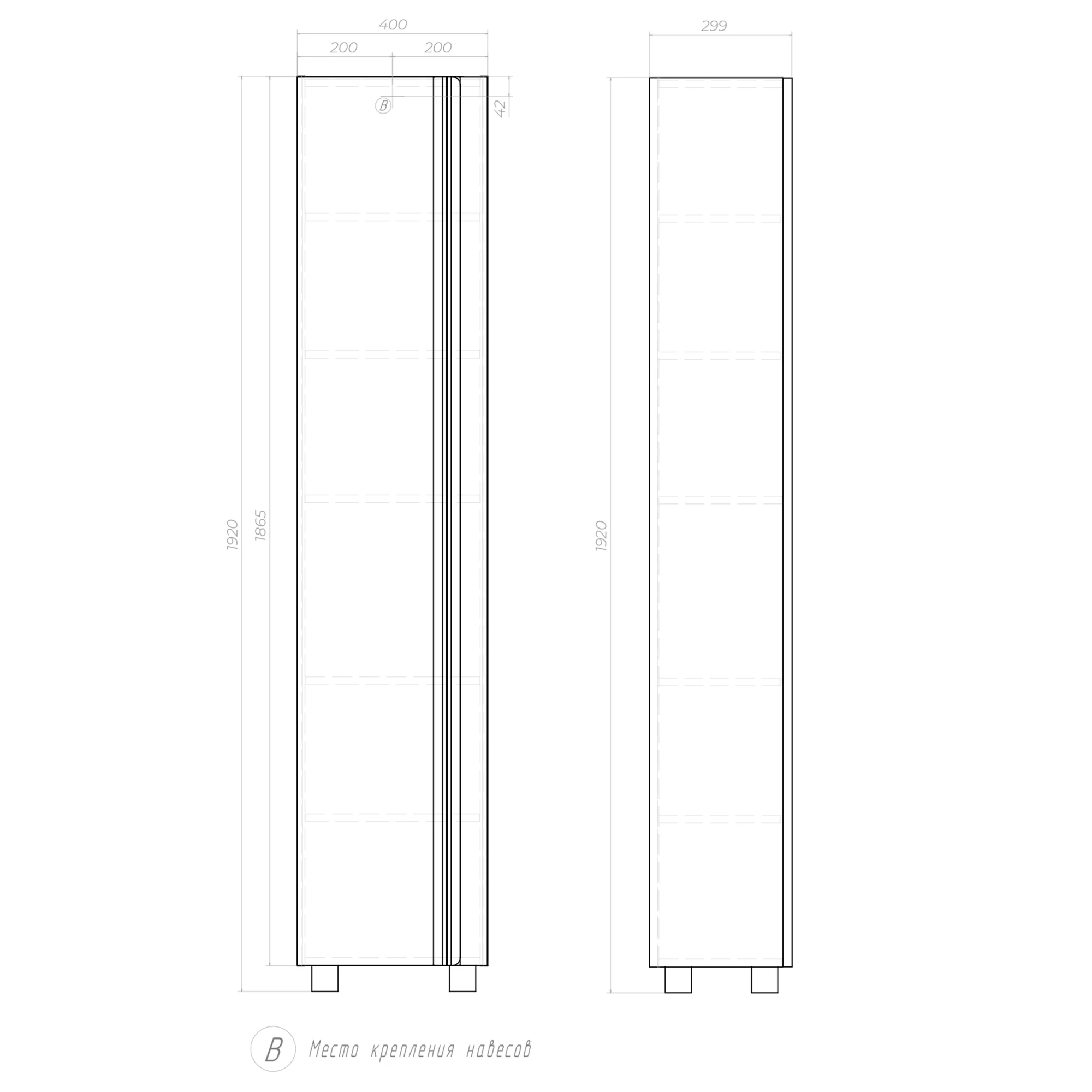 Комплектация: 1 дверца, 4 полки ЛДСП, петли с механизмом доводчика, 4 опоры квадратные регулируемые