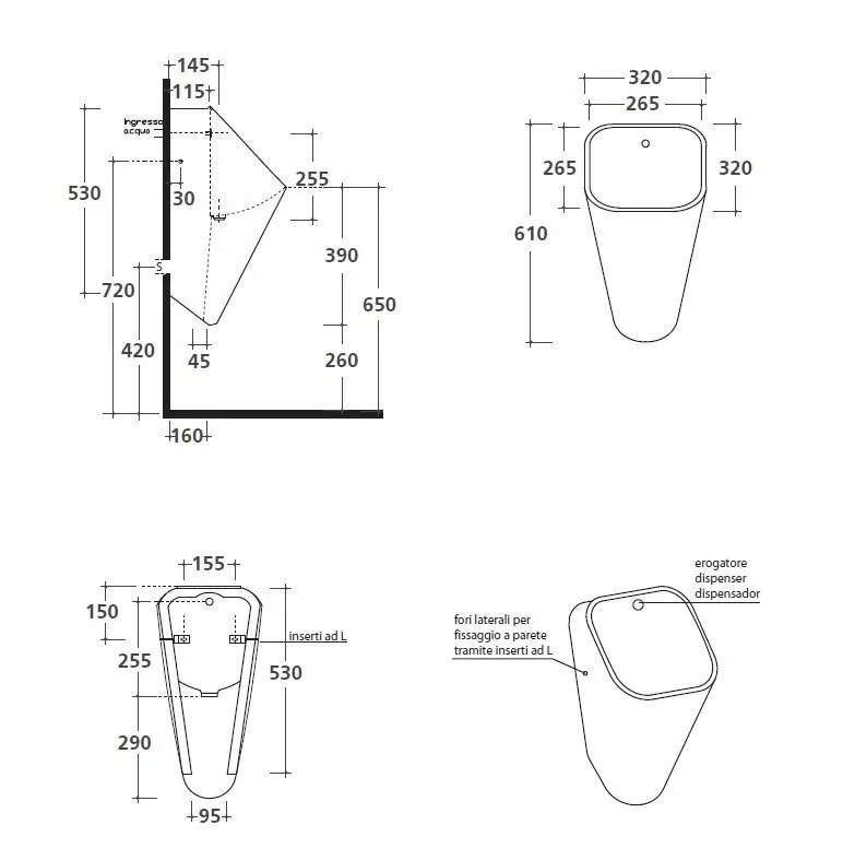 - Писсуар подвесной, размер 32х32х60 см. Цв. белый глянцевый.