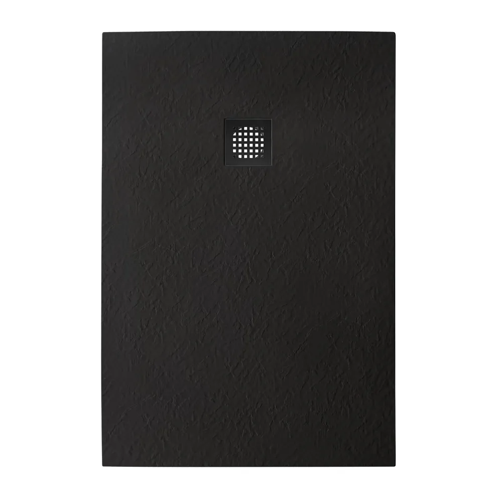 Поддон из искусственного мрамора в комплекте с сифоном с декоративной накладкой (черный)
