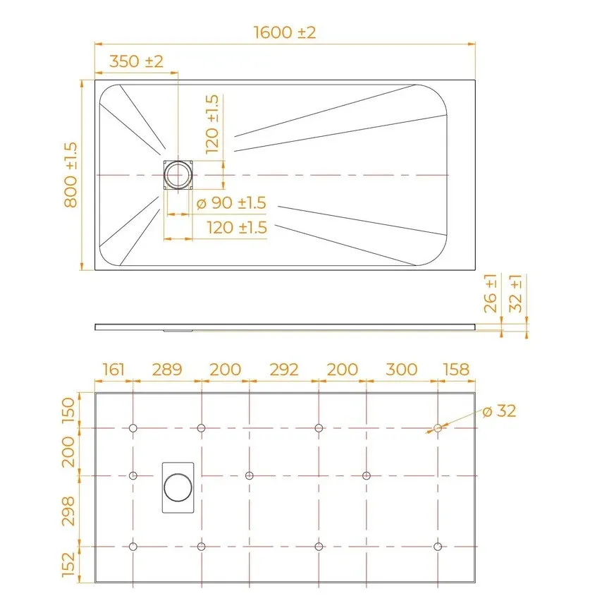Поддон душевой, прямоугольный, 800х1600 мм, производится на высокоточном оборудовании под воздействием большого давления и высокой температуры. В результате получаются изделия по твердости поверхности не уступающие закалённому стеклу, а волокнистая структура материала и специальная конструкция поддонов позволяет выдерживать значительные механические нагрузки. Низкая теплопроводность материала, такая же как у дерева, позволяет поддерживать комфортную температуру поверхности поддона в процессе использования.