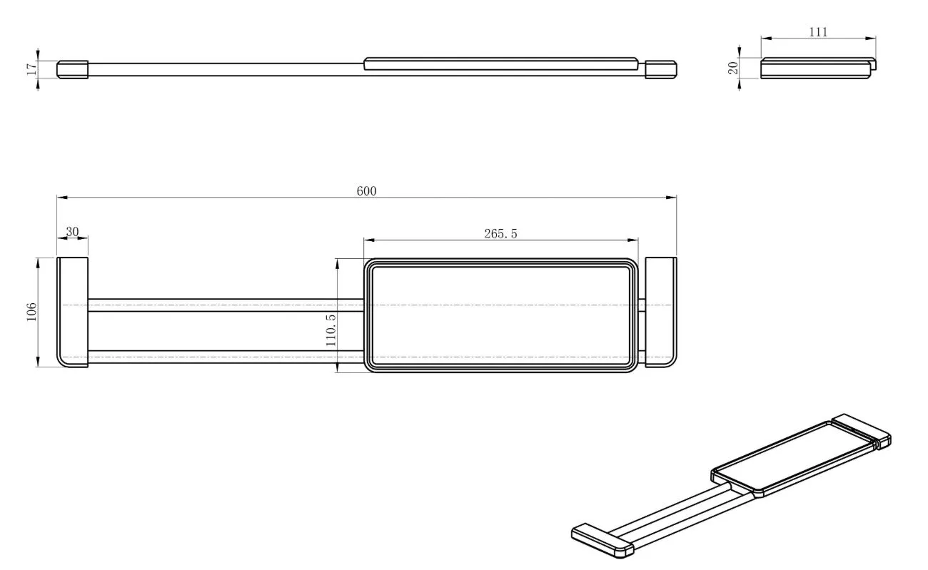 Полка для полотенец Wonzon & Woghand WW-V3701-MB раздвижная, чёрная матовая