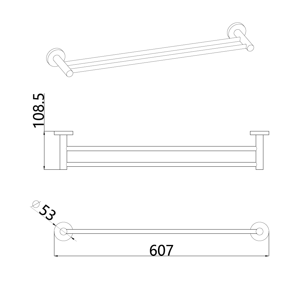 Полотенцедержатель AQUAME Trento AQM7205CR двойной 60 см, хром
