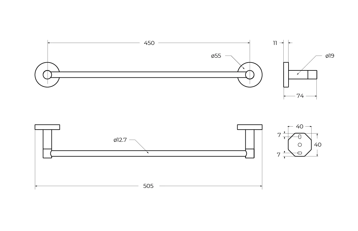 - Размеры (ШхВхГ): 505х55х74 мм.