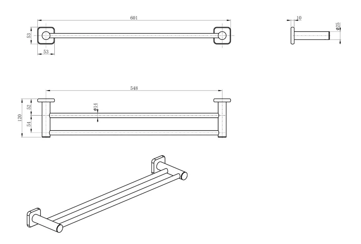 Полотенцедержатель Wonzon & Woghand WW-V1102-CR двойной, 60 см, хром