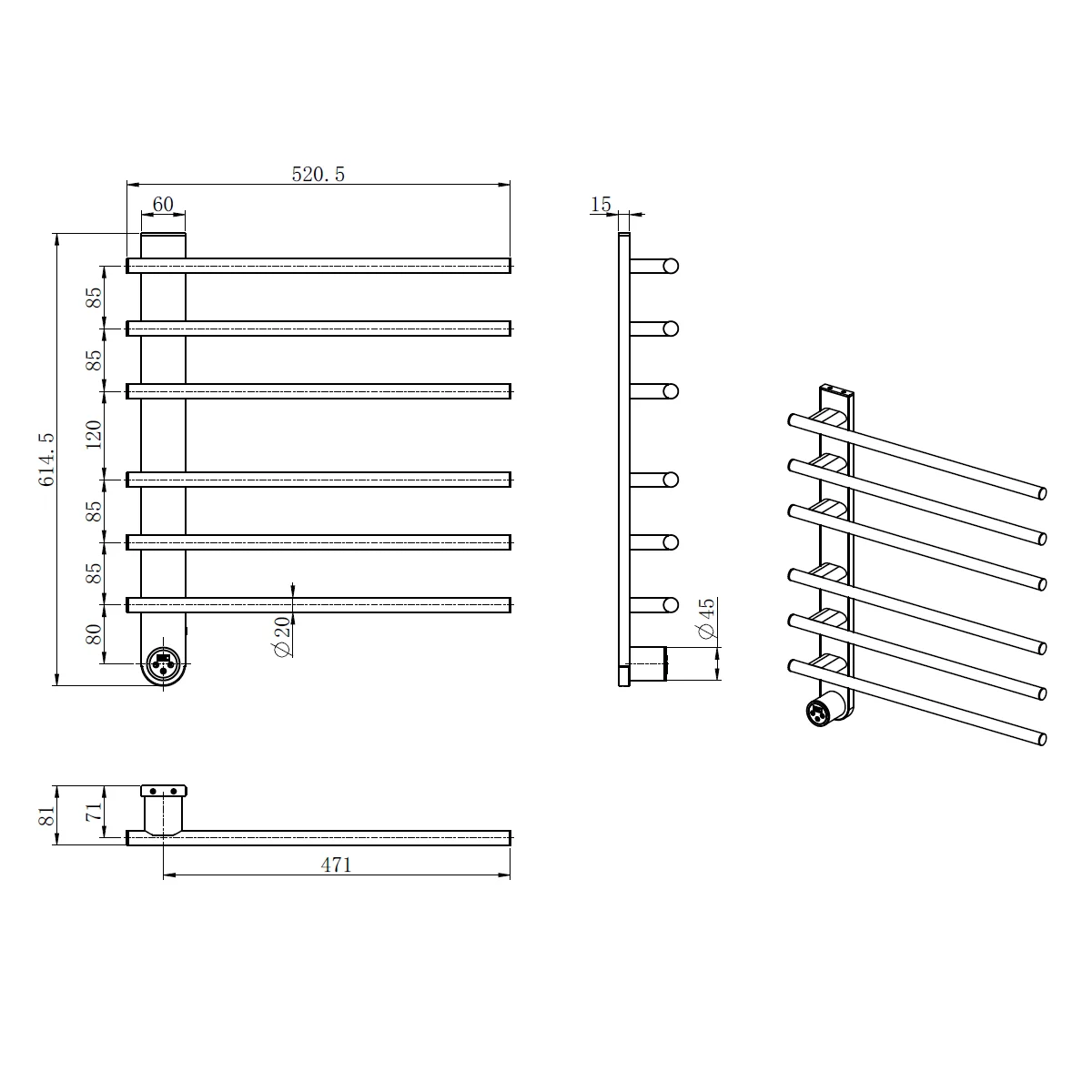 Полотенцесушитель электрический AQUAME AQM3116MB черный