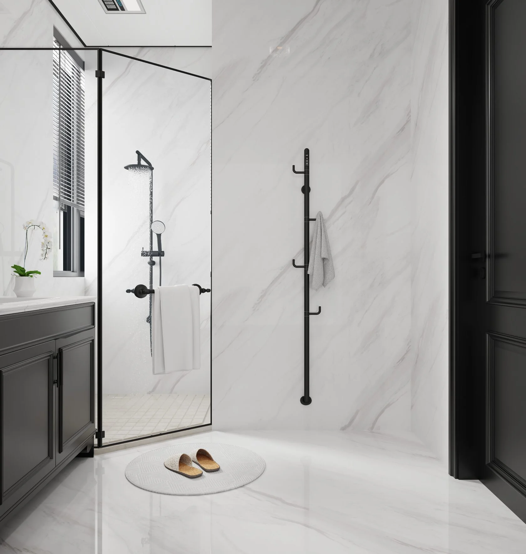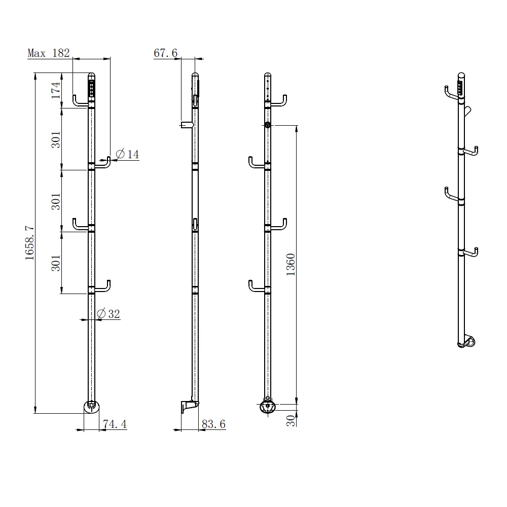 Полотенцесушитель электрический AQUAME AQM3150MB с поворотными крючками, черный