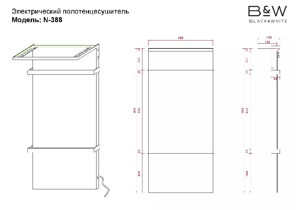 Полотенцесушитель электрический Black & White N-388GM темно-серый мрамор