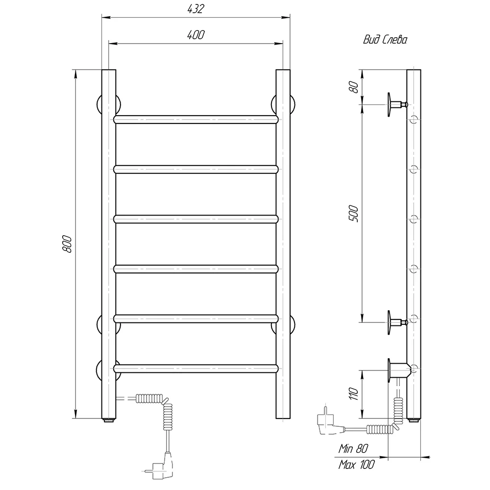 Полотенцесушитель электрический Domoterm Аврора 109-6 40x80 тэн слева