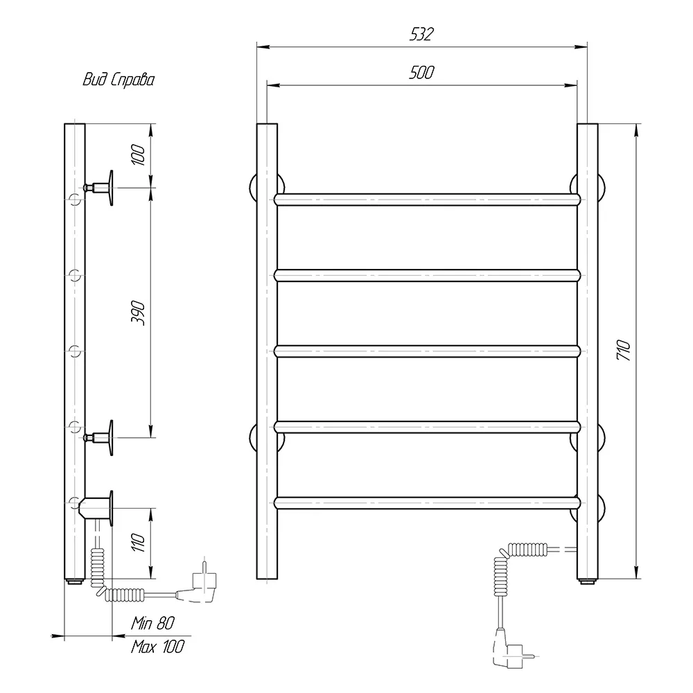 Полотенцесушитель электрический Domoterm Аврора 109-5 50x71 тэн справа