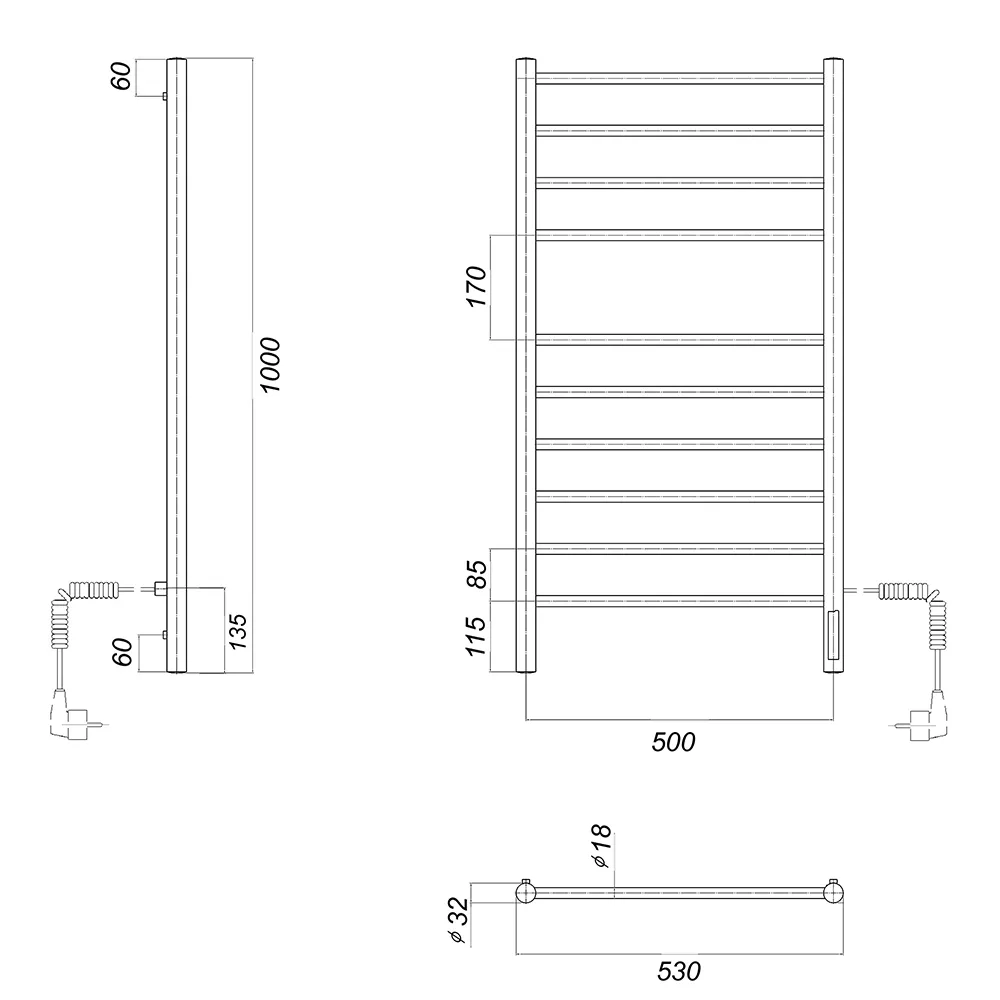Полотенцесушитель электрический Domoterm Медея П 10 50x100 тэн справа