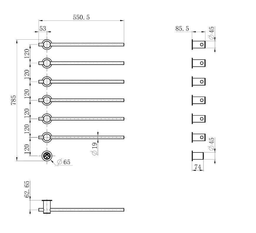 Полотенцесушитель электрический Wonzon & Woghand Baden WW-AL366-BR встраиваемый, брашированный никель