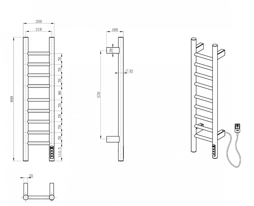 - Полотенцесушитель электрический Wonzon & Woghand Bonn WW-AL4092-GM 250х800 мм, темный графит