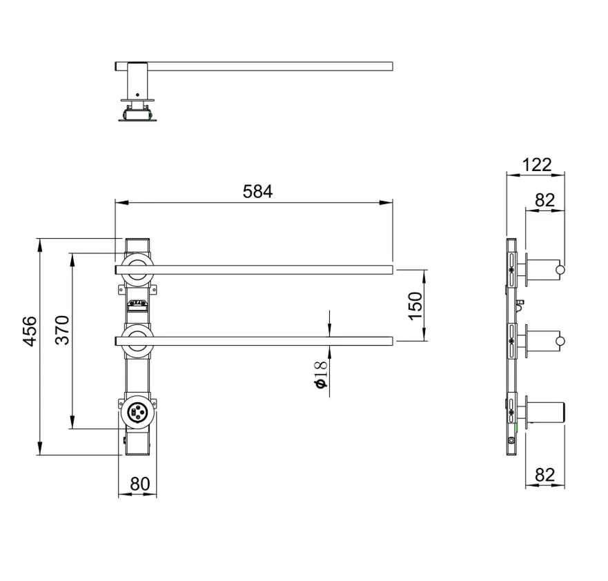 Полотенцесушитель электрический Wonzon & Woghand Dortmund WW-A362-MB встраиваемый, чёрный матовый