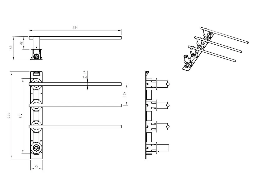 Полотенцесушитель электрический Wonzon & Woghand Dortmund WW-A363-BG встраиваемый, брашированное золото