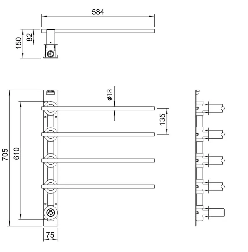 Полотенцесушитель электрический Wonzon & Woghand Dortmund WW-A364-BR встраиваемый, брашированный никель