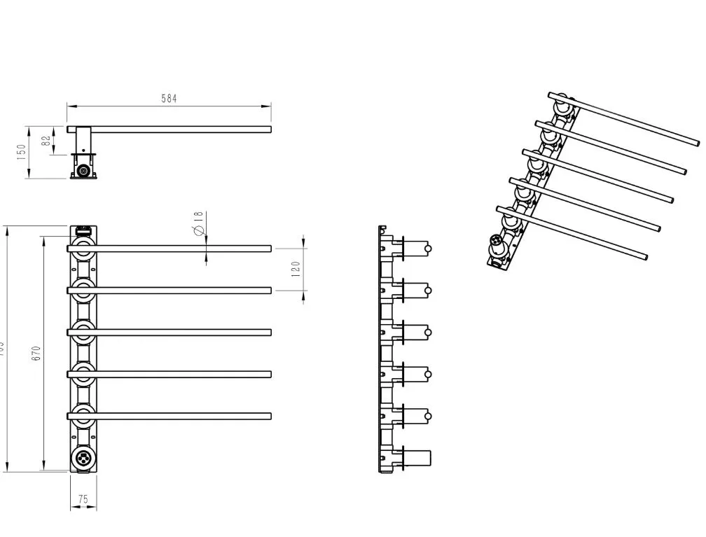 Полотенцесушитель электрический Wonzon & Woghand Dortmund WW-A365-GM встраиваемый, темный графит